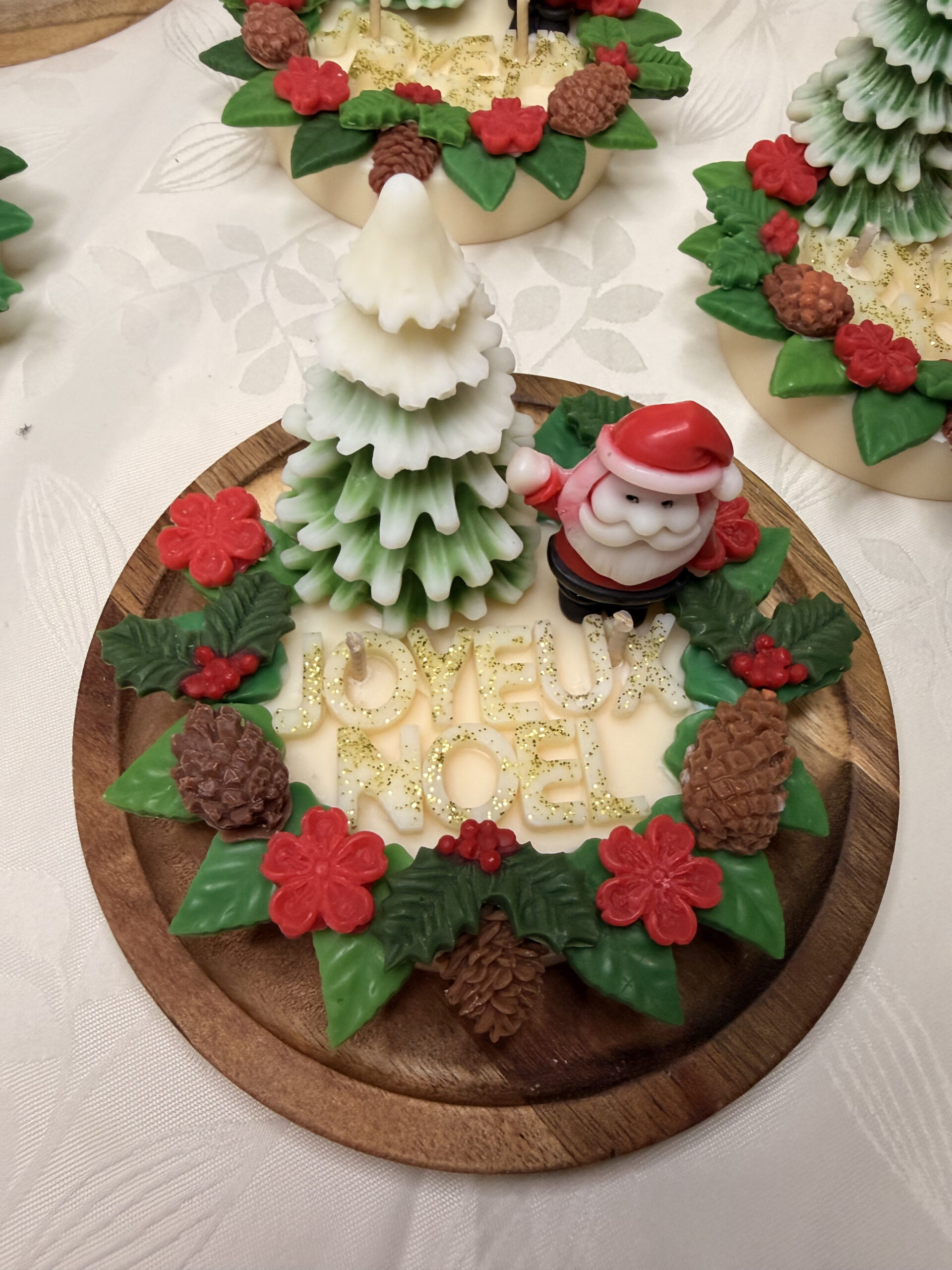Au centre, lâinscription âJoyeux NoĂ«lâ accompagnĂ©e dâun petit sapin et dâun PĂšre NoĂ«l ajoute une touche magique et joyeuse âš. Ainsi, cette bougie trouve facilement sa place sur une table de fĂȘte, un buffet ou dans le salon. Elle sublime chaque espace avec raffinement.