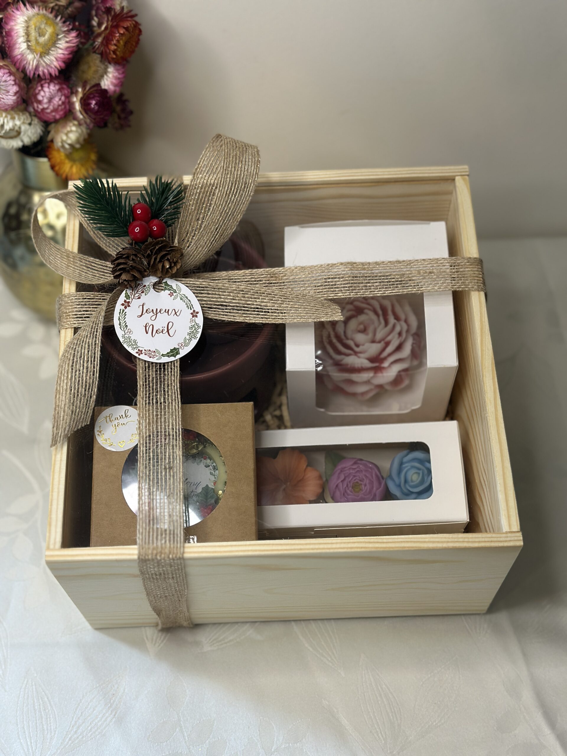 Plongez dans la magie des fêtes avec notre coffret « Floraison Enchantée », une invitation à la douceur, aux senteurs gourmandes et à l’artisanat authentique.